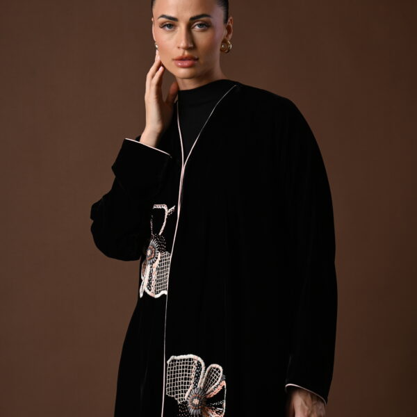 عباية مخمل او كريب ، شغل يدوي من الامام ، القصة كلوش
