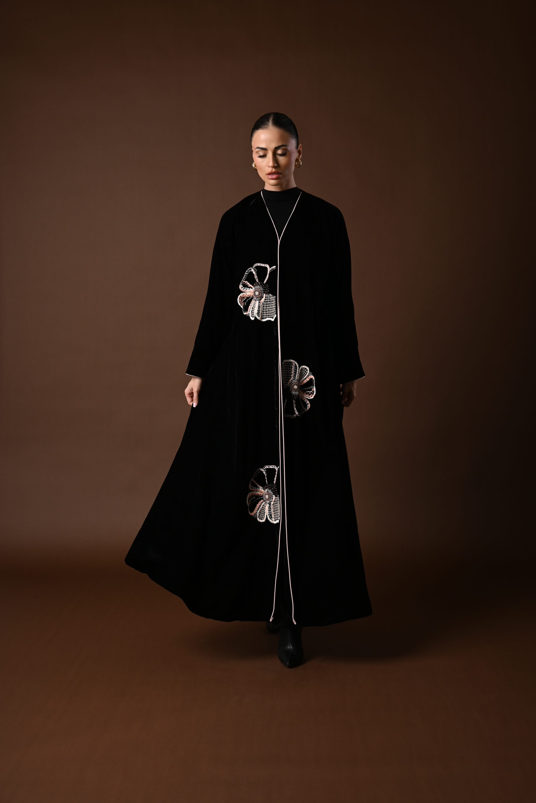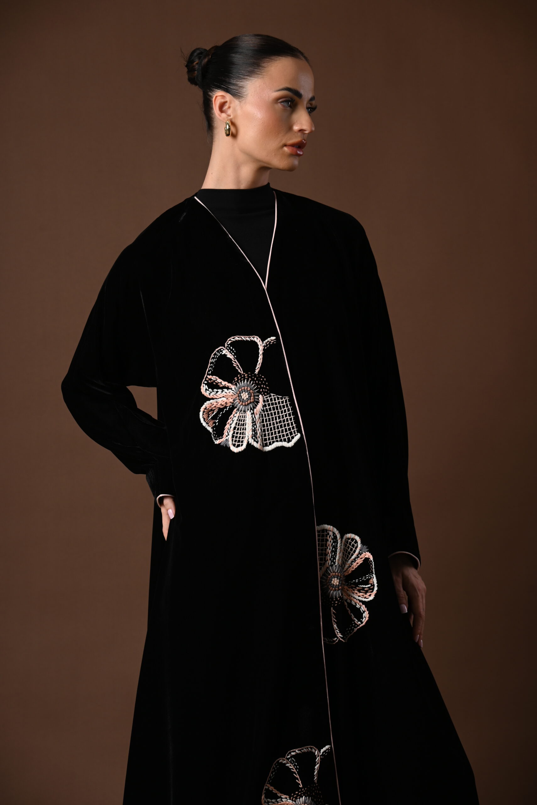 عباية مخمل او كريب ، شغل يدوي من الامام ، القصة كلوش
